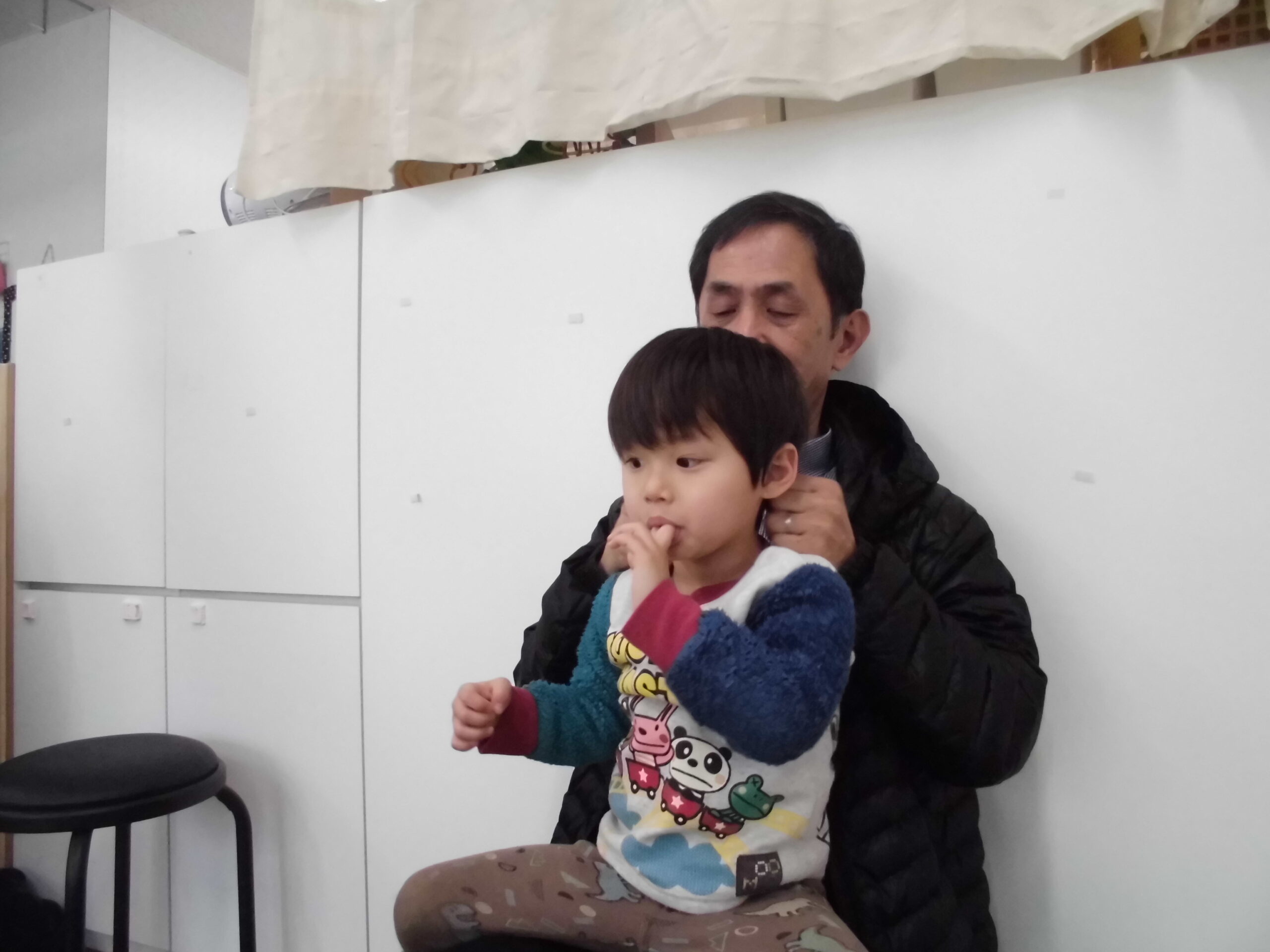 はるちゃんはおじいちゃんにトントンかたたき。あーきもちいい^^