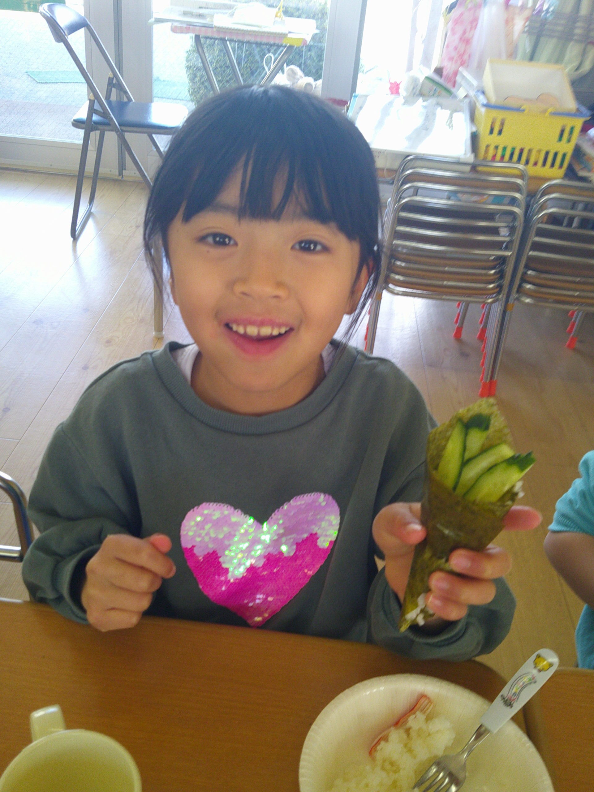 今日も、きちんとお椅子に座って給食を食べられていましたよ(^^)