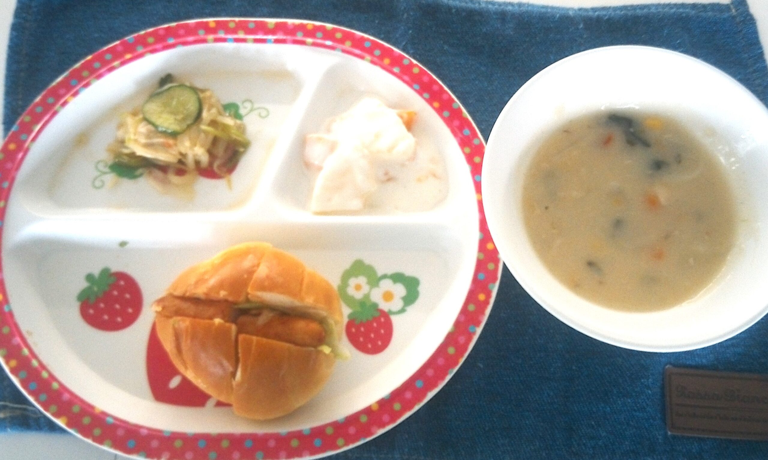 ホットドック・シチュー・ささみサラダ・フルーツヨーグルト