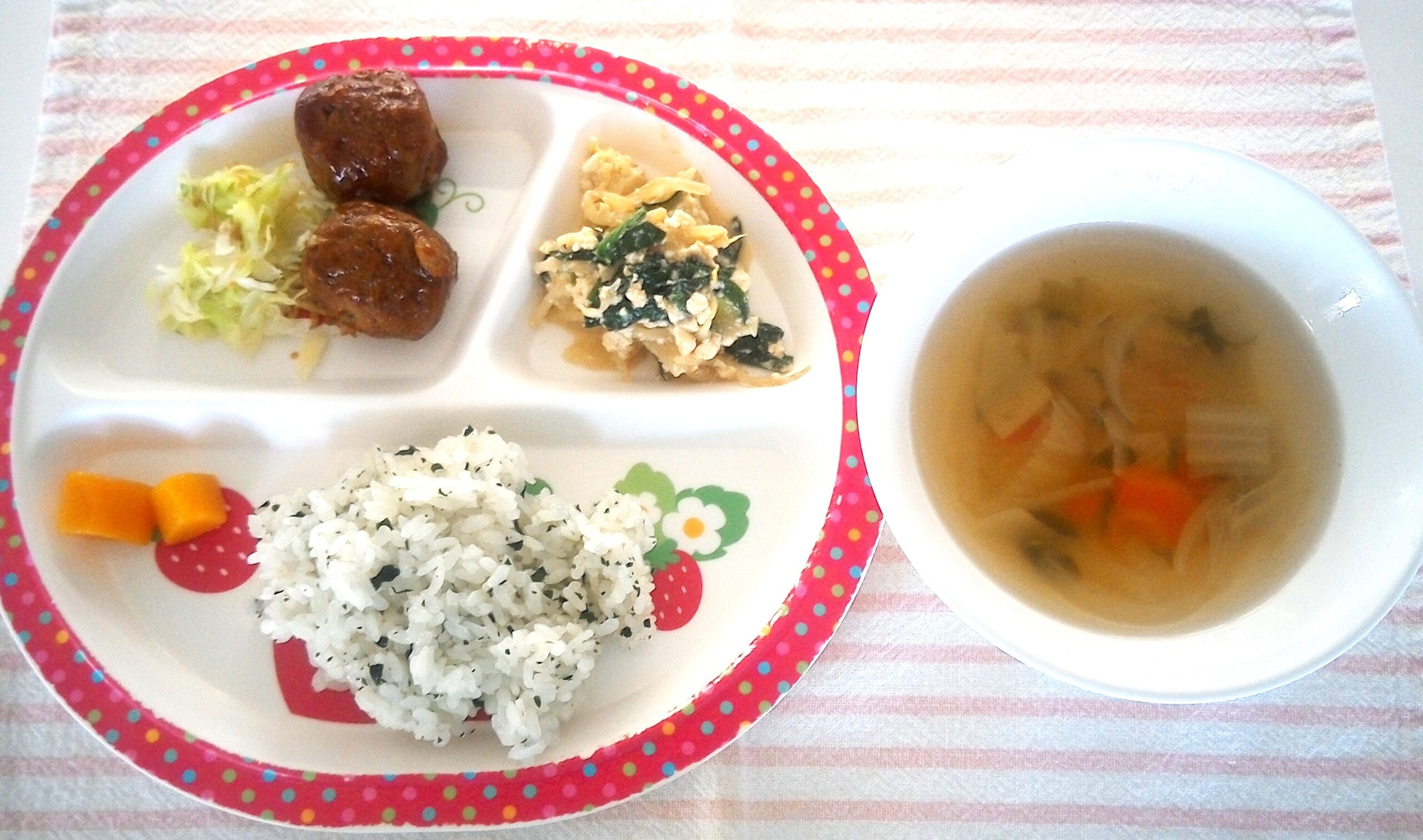 わかめご飯・ABCマカロニスープ・ミートボール・