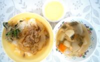 豚丼・じゃが芋人参キャベツ大根小松菜油揚げの具沢山味噌汁・