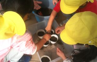 みんな、卒園してもたまには苗の具合を見に来てね♬