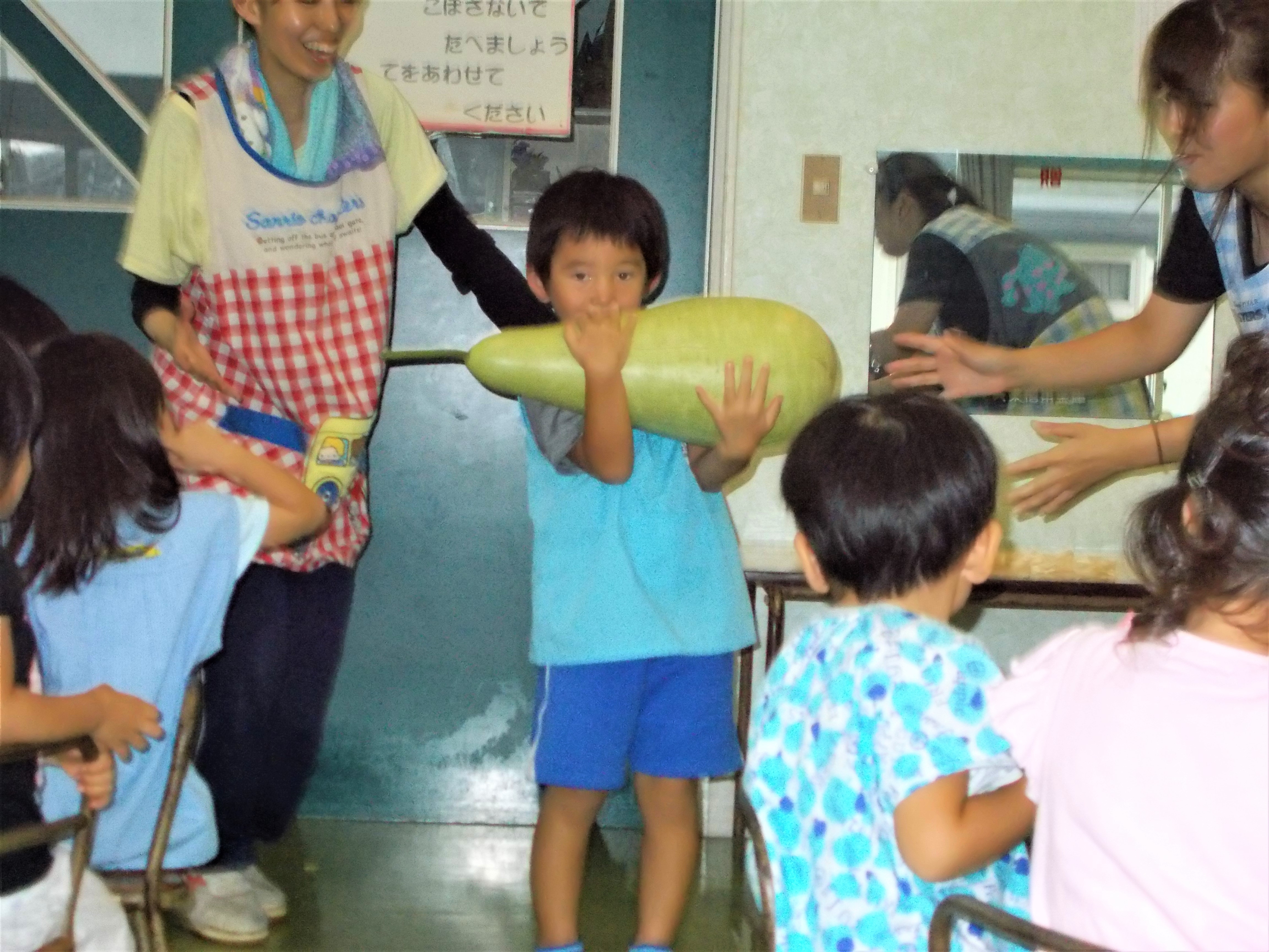何人かの子は、「持てるよ!!」と言って、重たい夕顔を持ってみました!