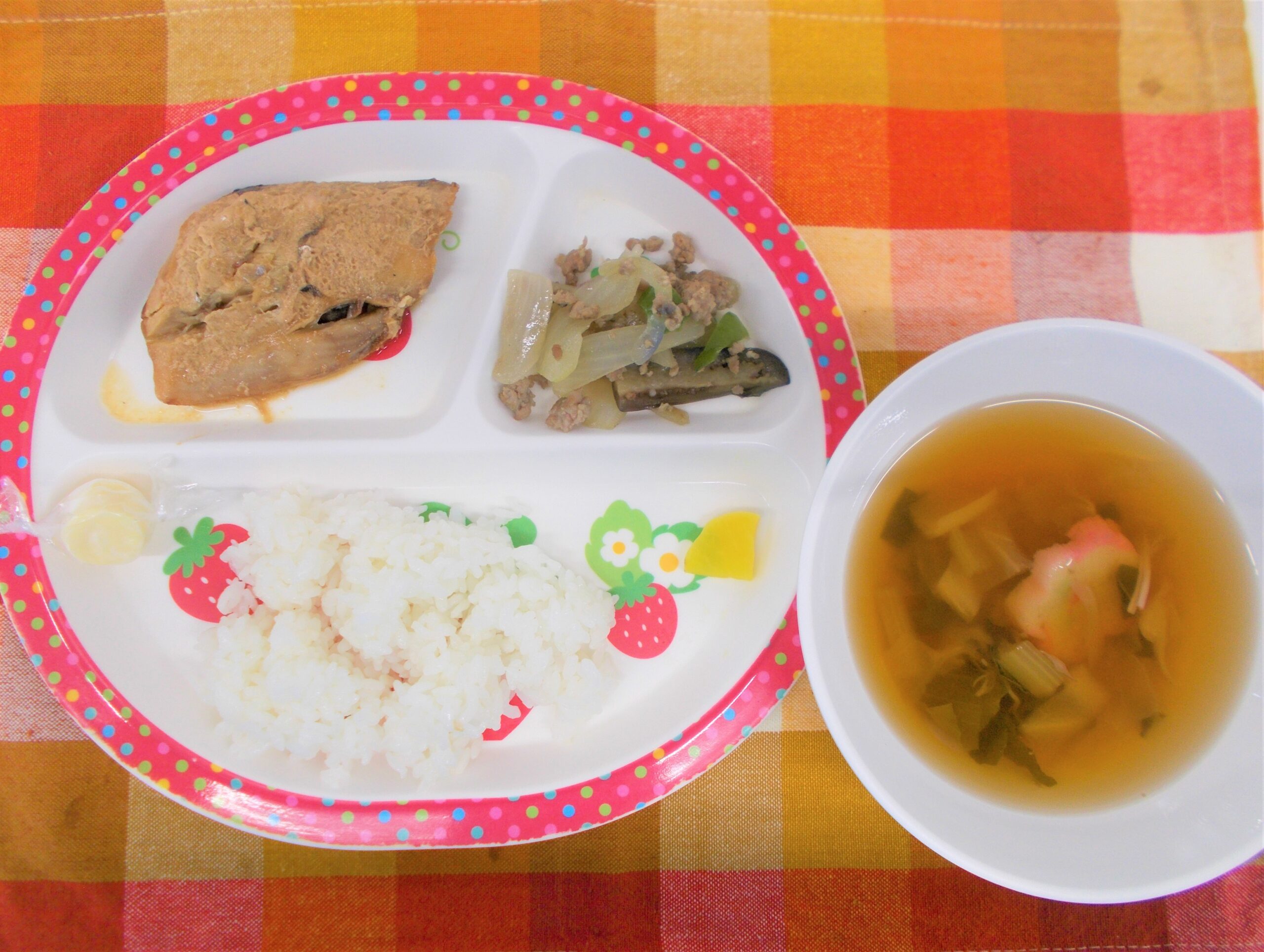 今日は、たまご・にじ・おひさま組の給食の様子ものぞいてきました。