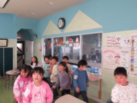 時間はお昼前。さあ、みんな給食です。今日先生と会えてよかったね。