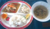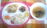 給食でも、大豆入りサラダと鬼の嫌いないわしの生姜煮を出しました。