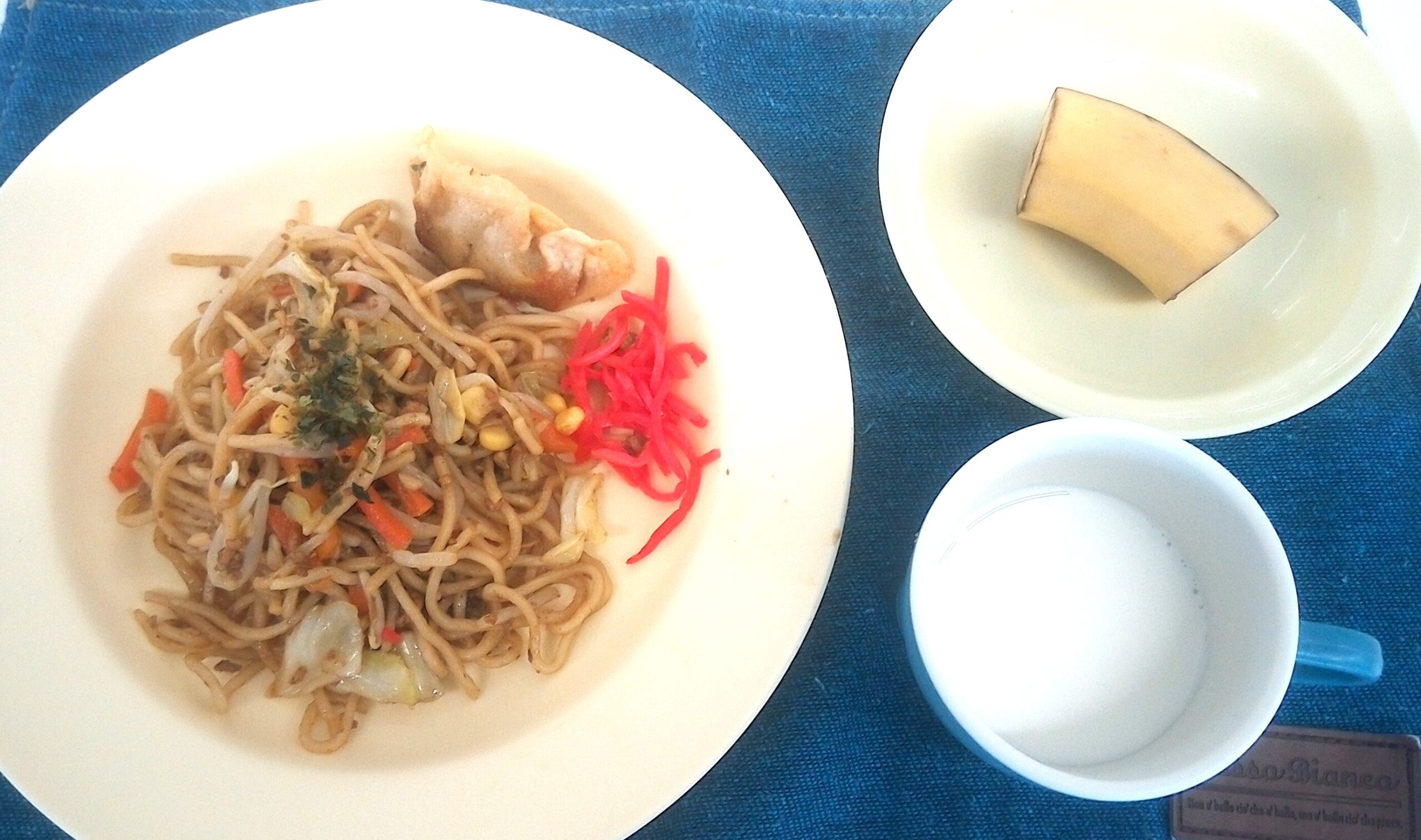 今日の給食は、きりん組さんのリクエストメニュー1位の焼きそば!