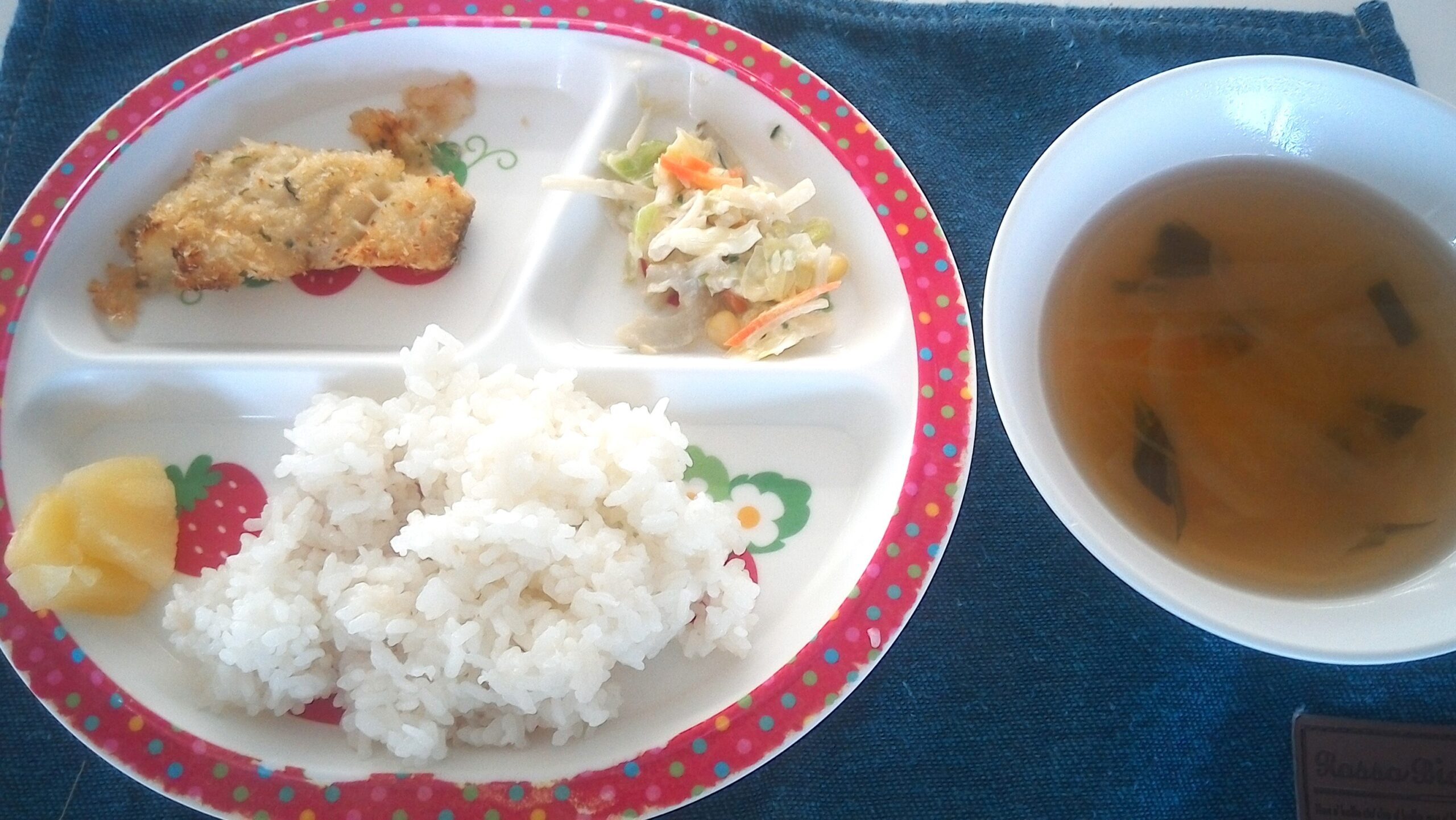 ごはん・春雨スープ・白身魚のパン粉焼き・かみかみサラダ・