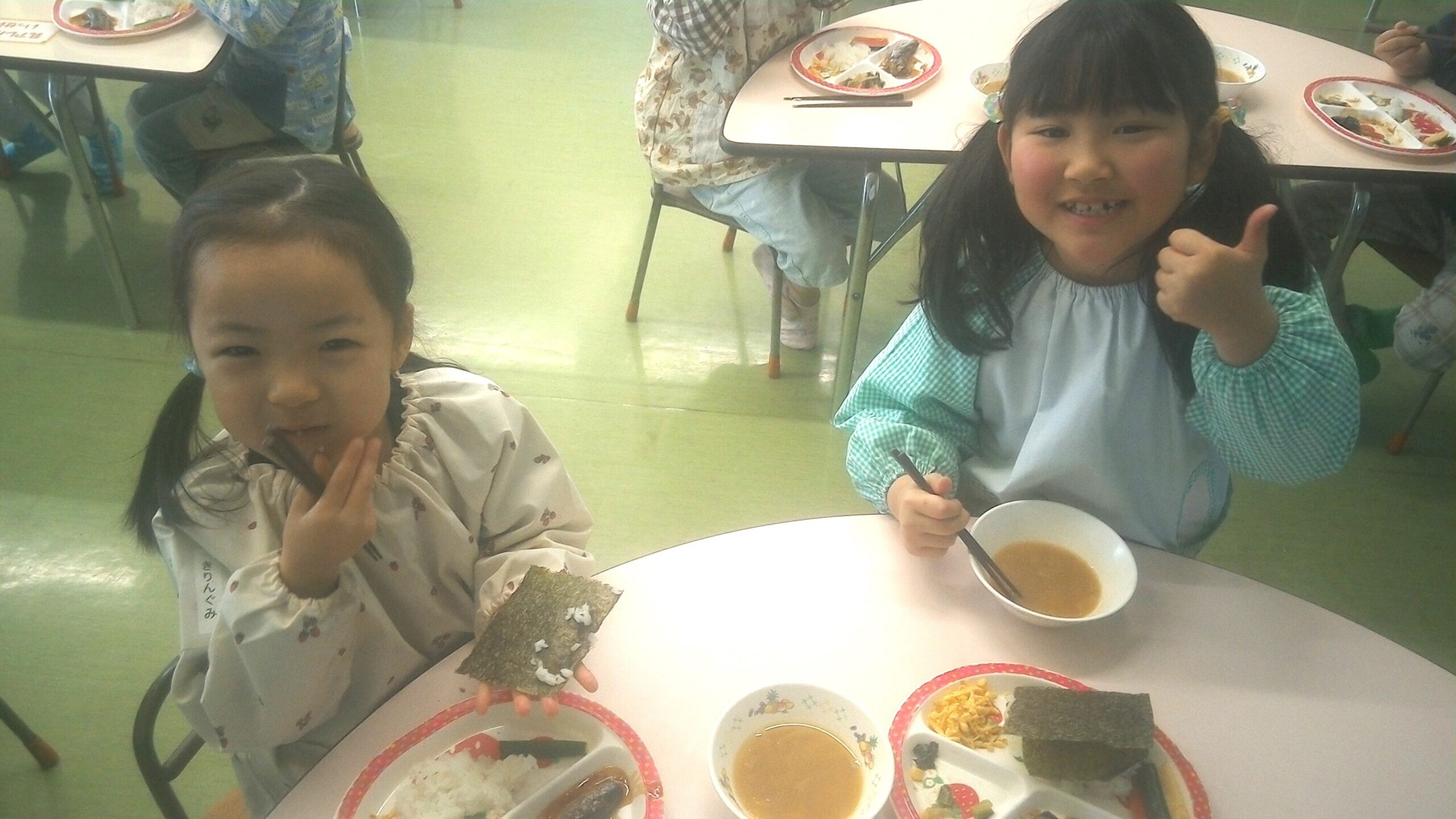 中には、お魚も一緒に巻いて食べている子や、ご飯だけ巻いている子。